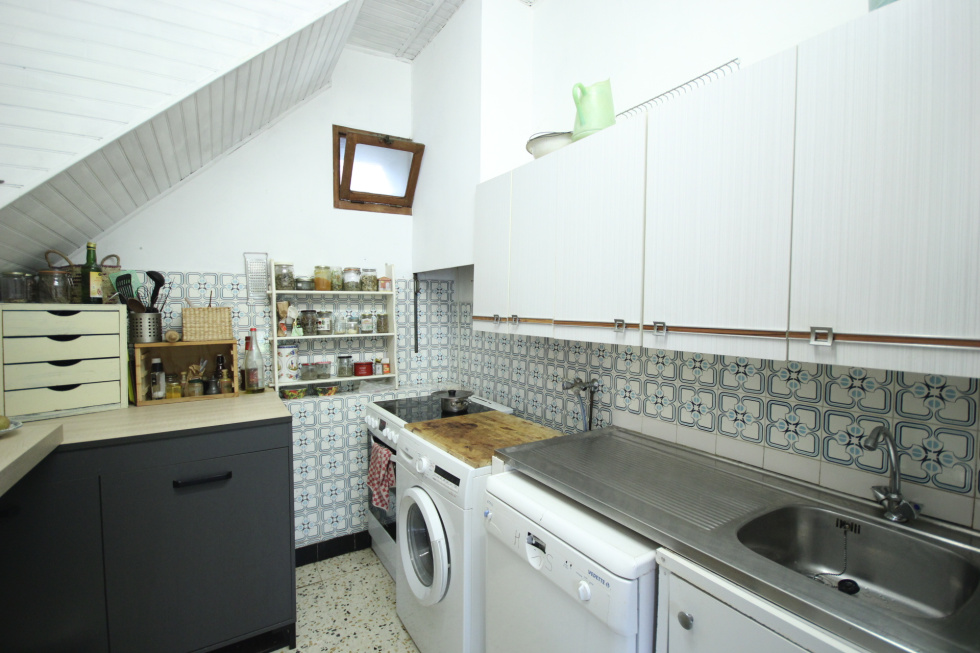A l’étage : palier, 1 chambre, 1 salle de bains, toilettes.