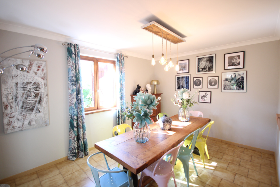 Une piscine de 7 x 3 m, entourée d’une terrasse ensoleillée, vient parfaire cet ensemble harmonieux.
