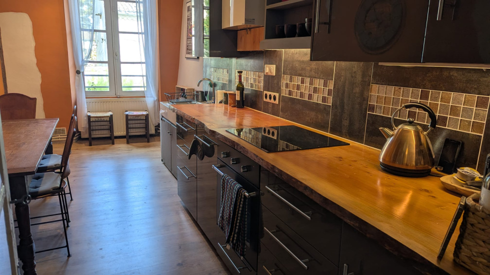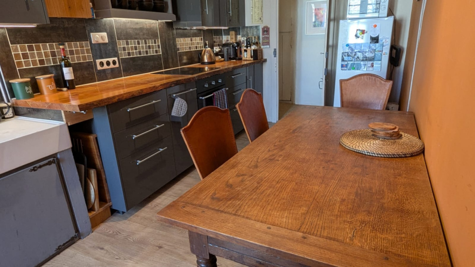 Un bel espace cuisine équipée/salle à manger se trouve côté nord, en conservant une bonne luminosité.