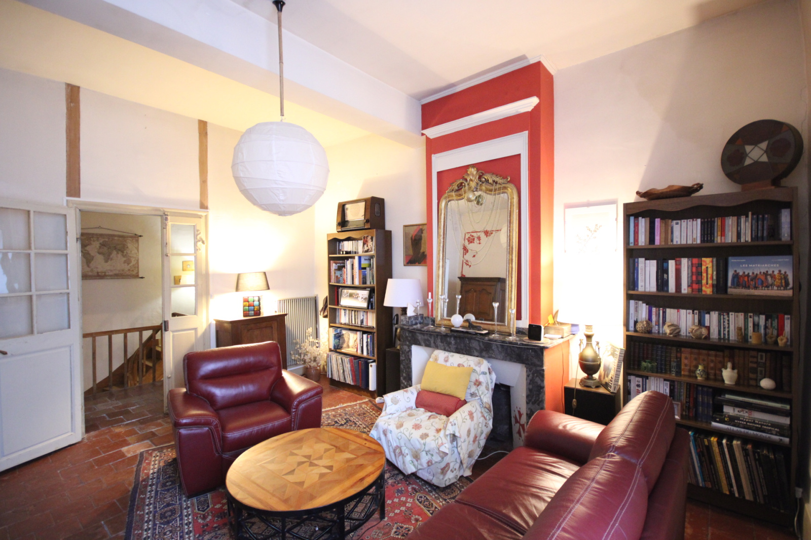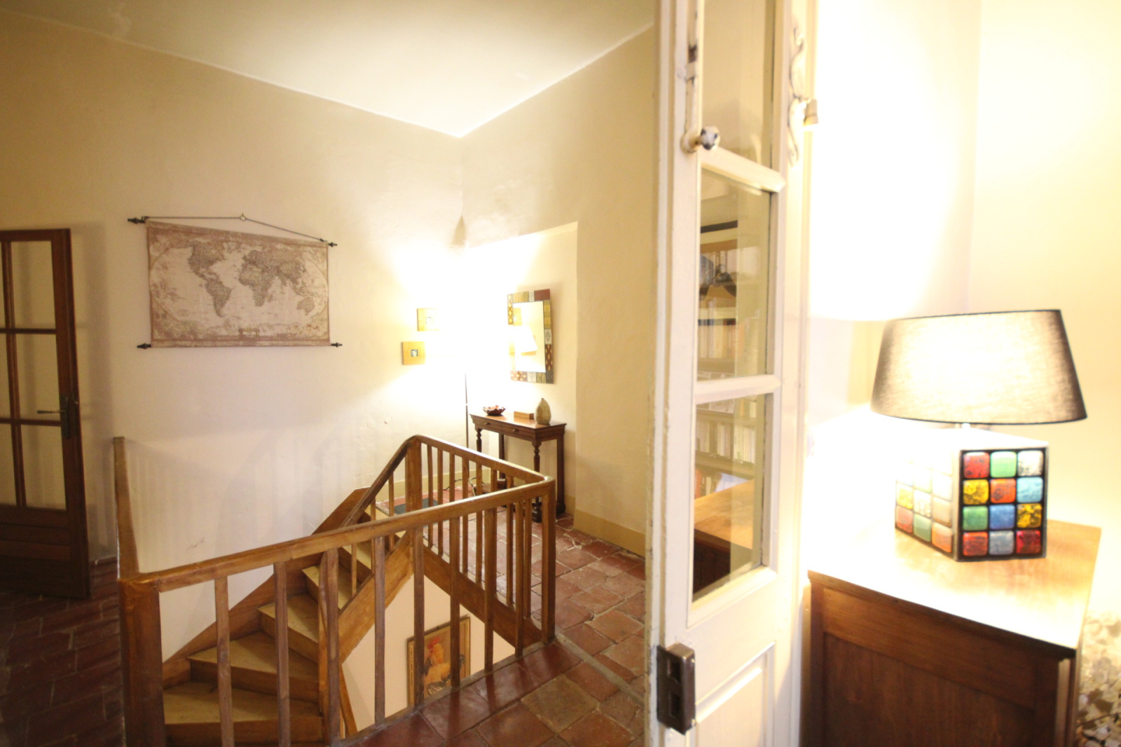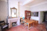 1er étage : palier, salon, salle à manger, grands volumes et hauteur de plafonds ainsi que des tomettes d'origine au sol et cheminées ouvertes, un bureau (possibilité de transformer en chambre).
