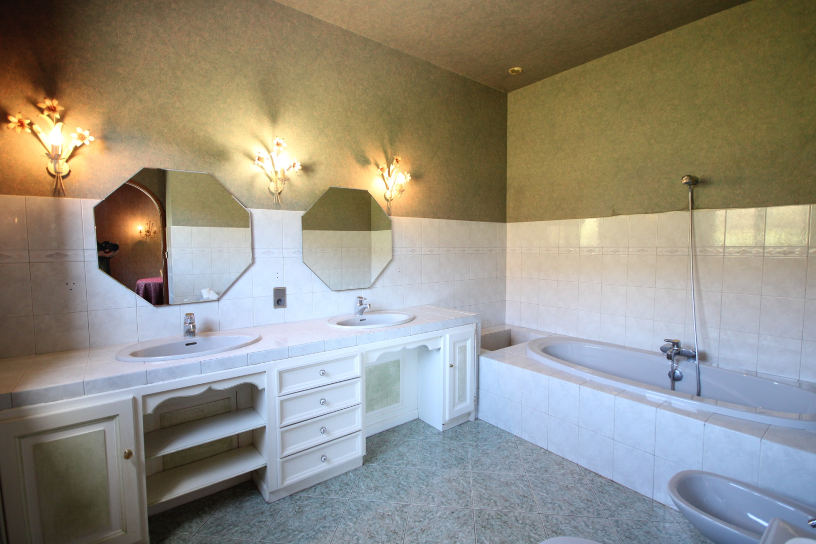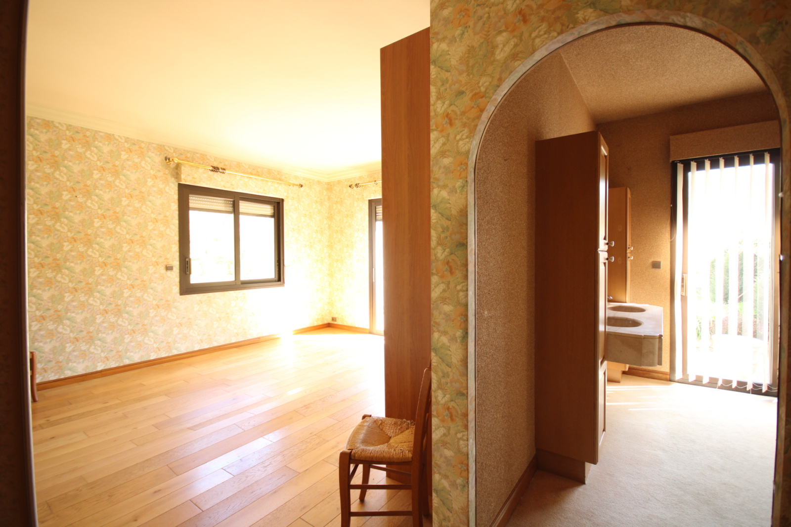 1 grand hall d'entrée de 38 m2, 1 salon avec cheminée, 1 salle à manger, 1 cuisine équipée de 23 m2, 1 chambre de 17.70 m2 avec sa salle de bains / toilettes (9.70 m2), toilettes, 1 chambre de 24.30 m2, 1 chambre de 9.60 m2 avec toilettes, 1 suite parentale de 21.20 m2 avec sa salle de bains et douche de 12 m2, 1 toilettes séparé, 1 chambre de 21 m2 avec sa salle de bains (11.50 m2) toilettes