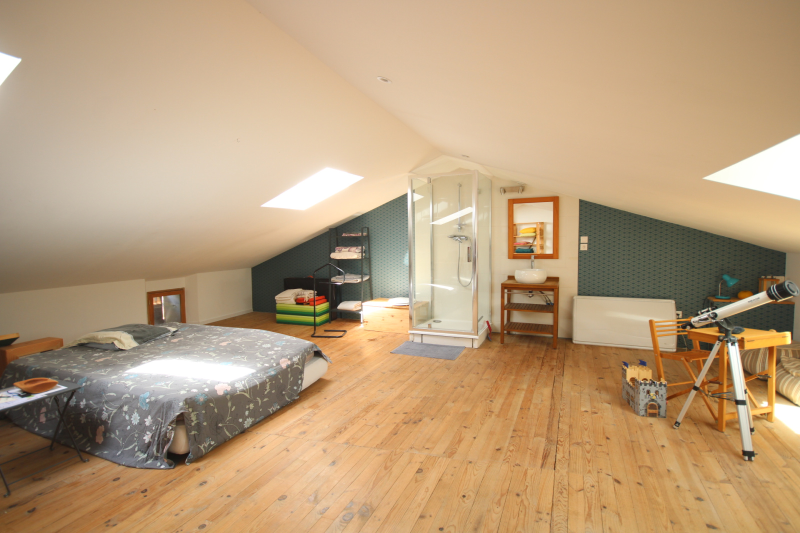 Au deuxième étage : 1 belle chambre mansardée et une salle d'eau.