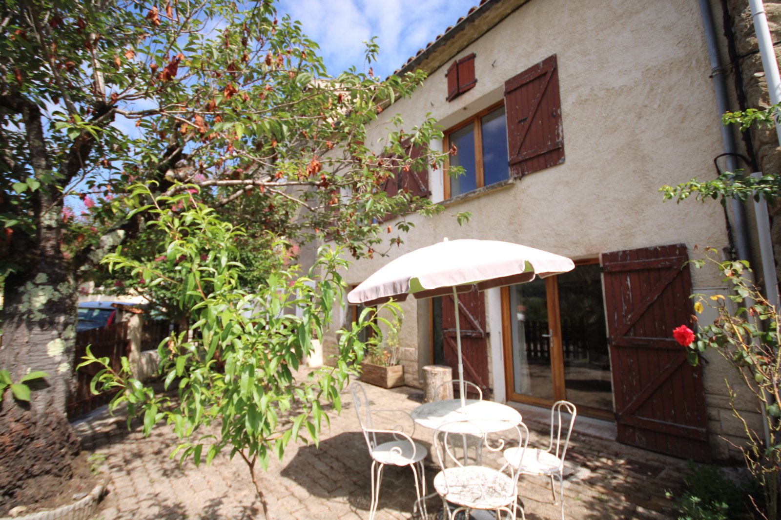 Jolie maison de village mitoyenne de deux côtés avec un jardin attenant de 1631 m² sur l'arrière de la maison, avec un deuxième accès indépendant. Exposition sud, belle terrasse. Petit atelier dépendance sur l'arrière.