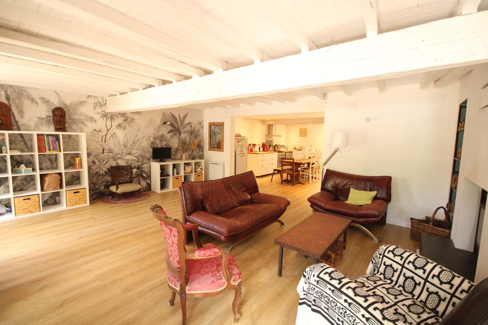 Au rez-de-chaussée : pièce à vivre (salon/ séjour cuisine) avec insert.