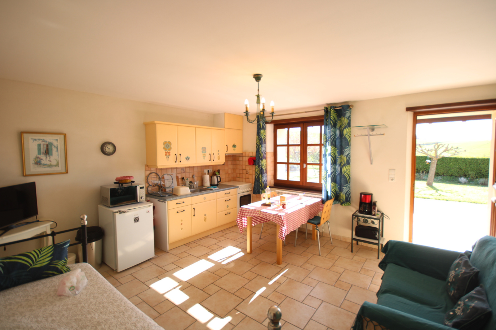 - 1 appartement très moderne, avec cuisine, salon, salle de bains et une chambre avec une vue spectaculaire sur le jardin.