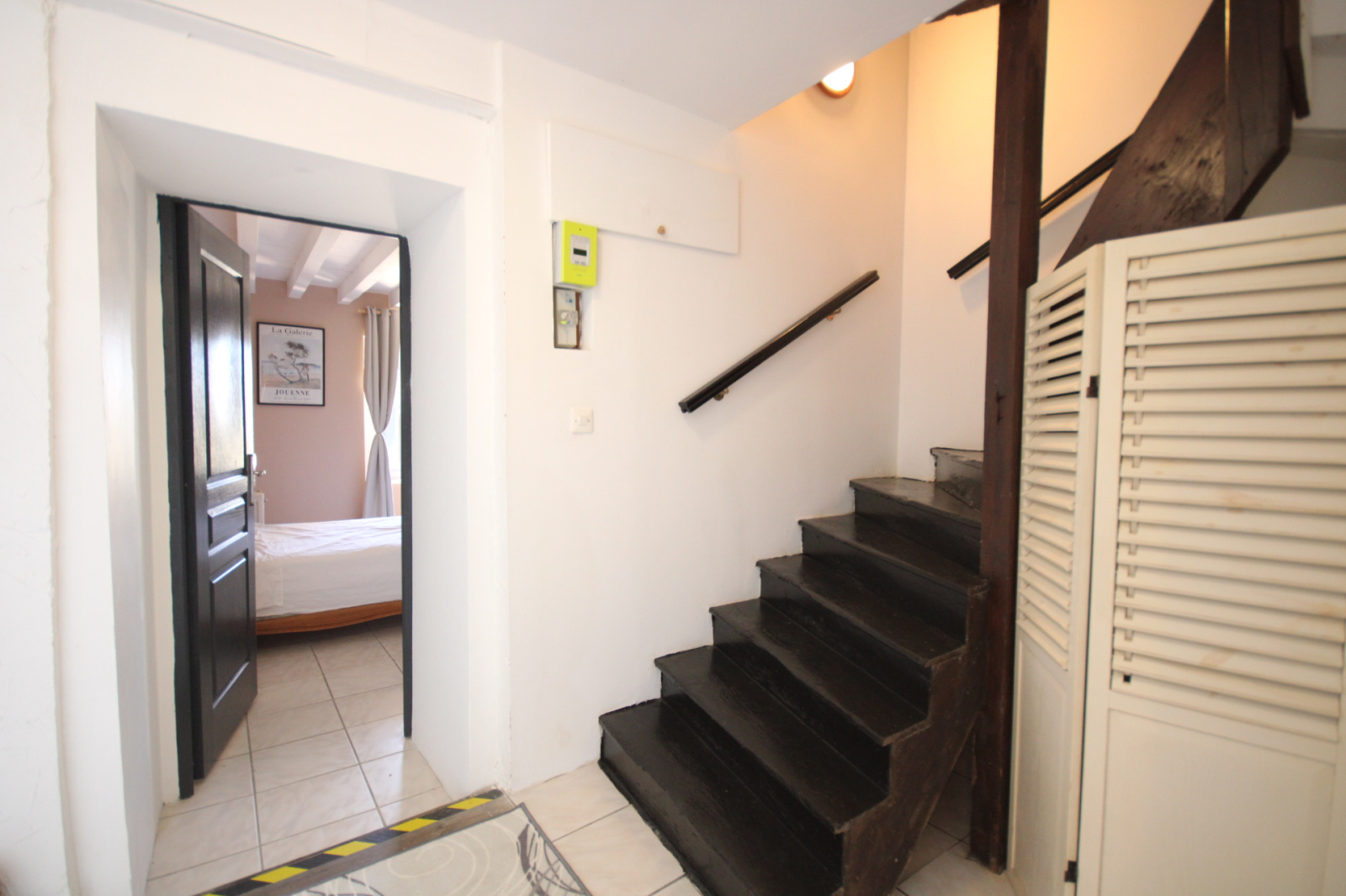 Au rez-de-chaussée : garage, hall d’entrée, salle d’eau avec toilettes, 1 chambre.
