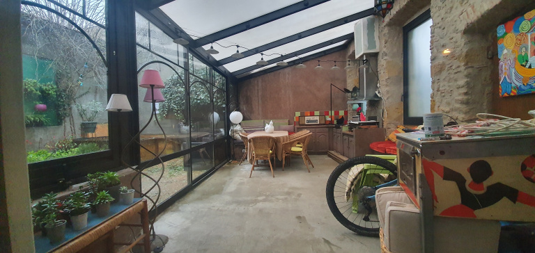 Une entrée, un grand salon / séjour avec cheminée, cuisine aménagée, véranda, buanderie, cellier, cave.