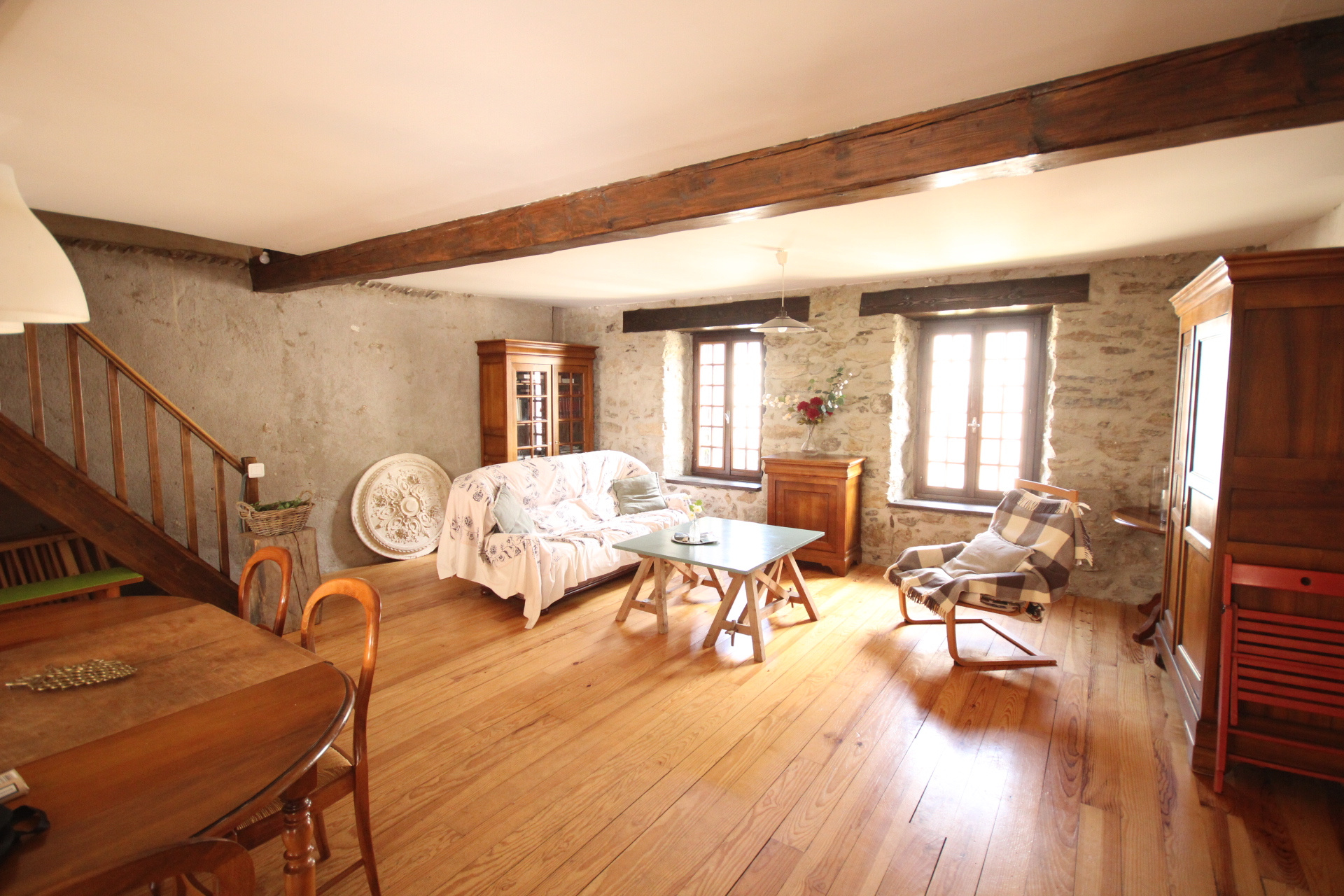 Rez de chaussée : 1 salon/séjour avec poêle bois et cuisine équipée