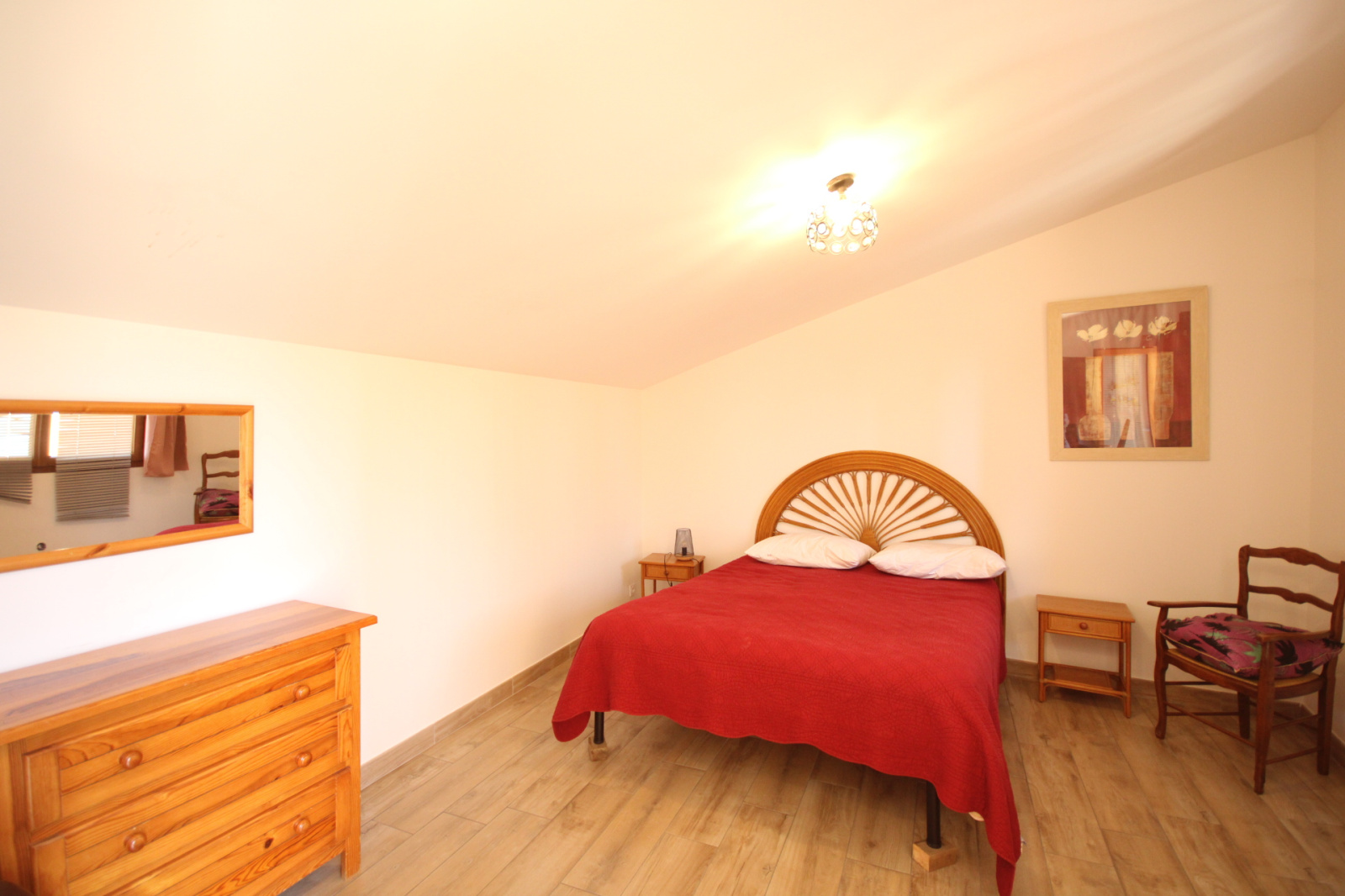 1er étage : palier, 3 chambres (dont 1 avec accès terrasse Sud et vue sur les Pyrénées), 1 salle d’eau et toilettes.