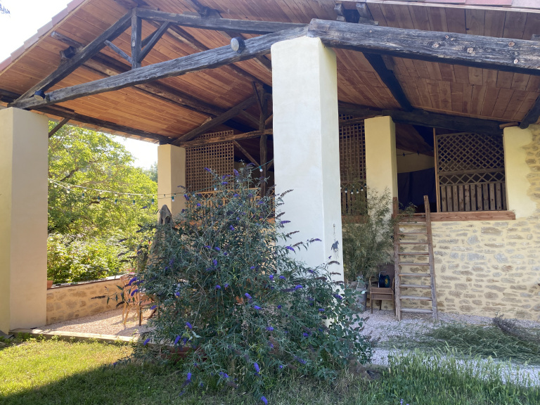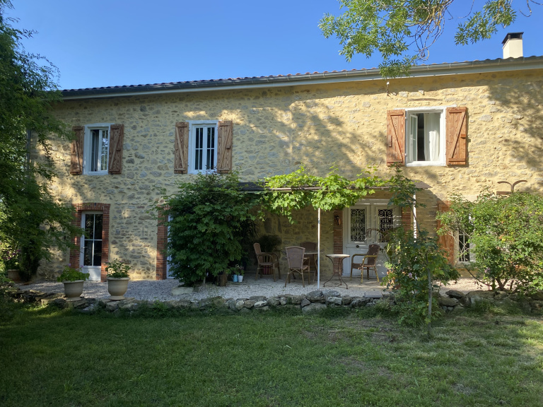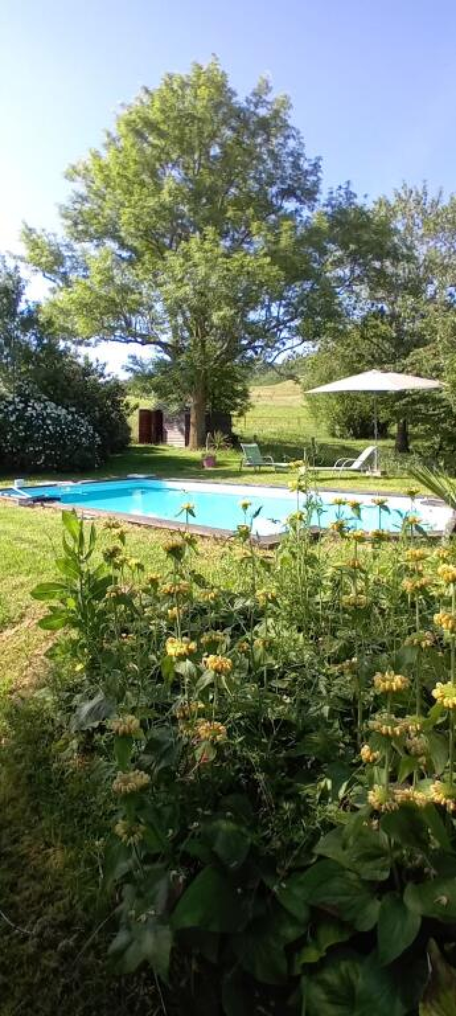 Dans un cadre buccolique, vue sur la campagne environnante, au calme, propriété en pierres d’une surface habitable de 330 m2 sur terrain de 5 ha 34 a 84 ca clôturé, arboré, piscine, terrasse couverte de 45 m2 et sa dependance garage de 79m²