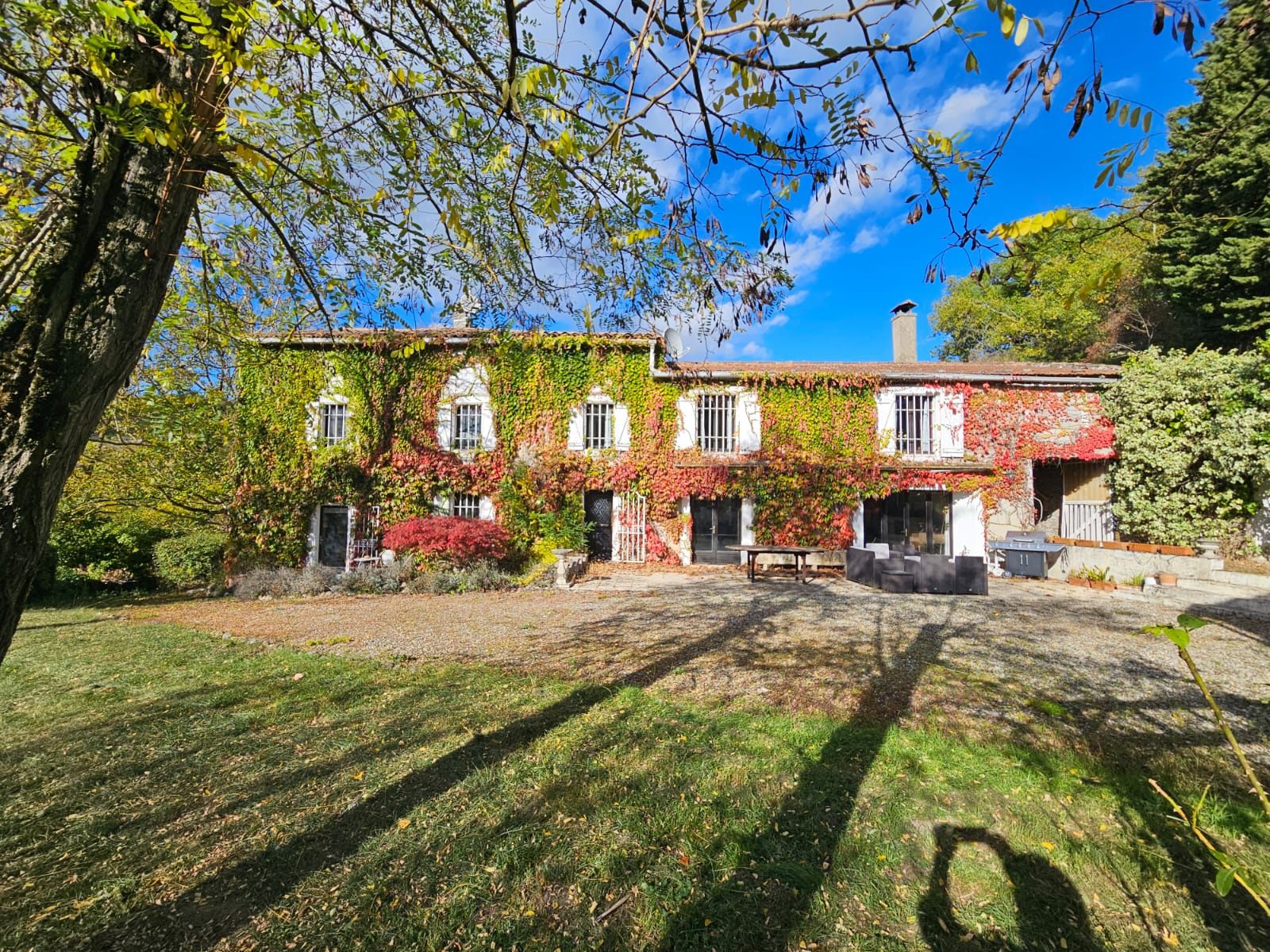 Limite Aude-Ariège, domaine de caractère (années 1800) implanté sur un flanc de colline sur env. 4 hectares 80 dont parc de la maison paysagé (arbres fruitiers et potager) bois et landes . 1 puits.