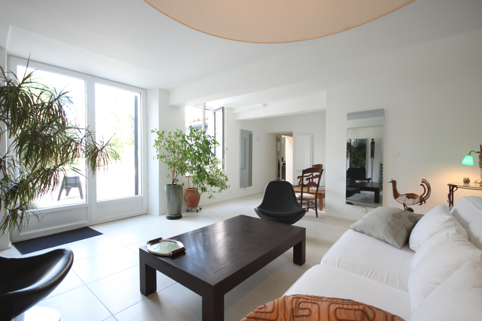 Magnifique maison mitoyenne d'un côté entièrement rénovée, d'une surface habitable de 238 m2, sur terrain attenant de 2 567 m2 avec 2 accès et dont une partie constructible.