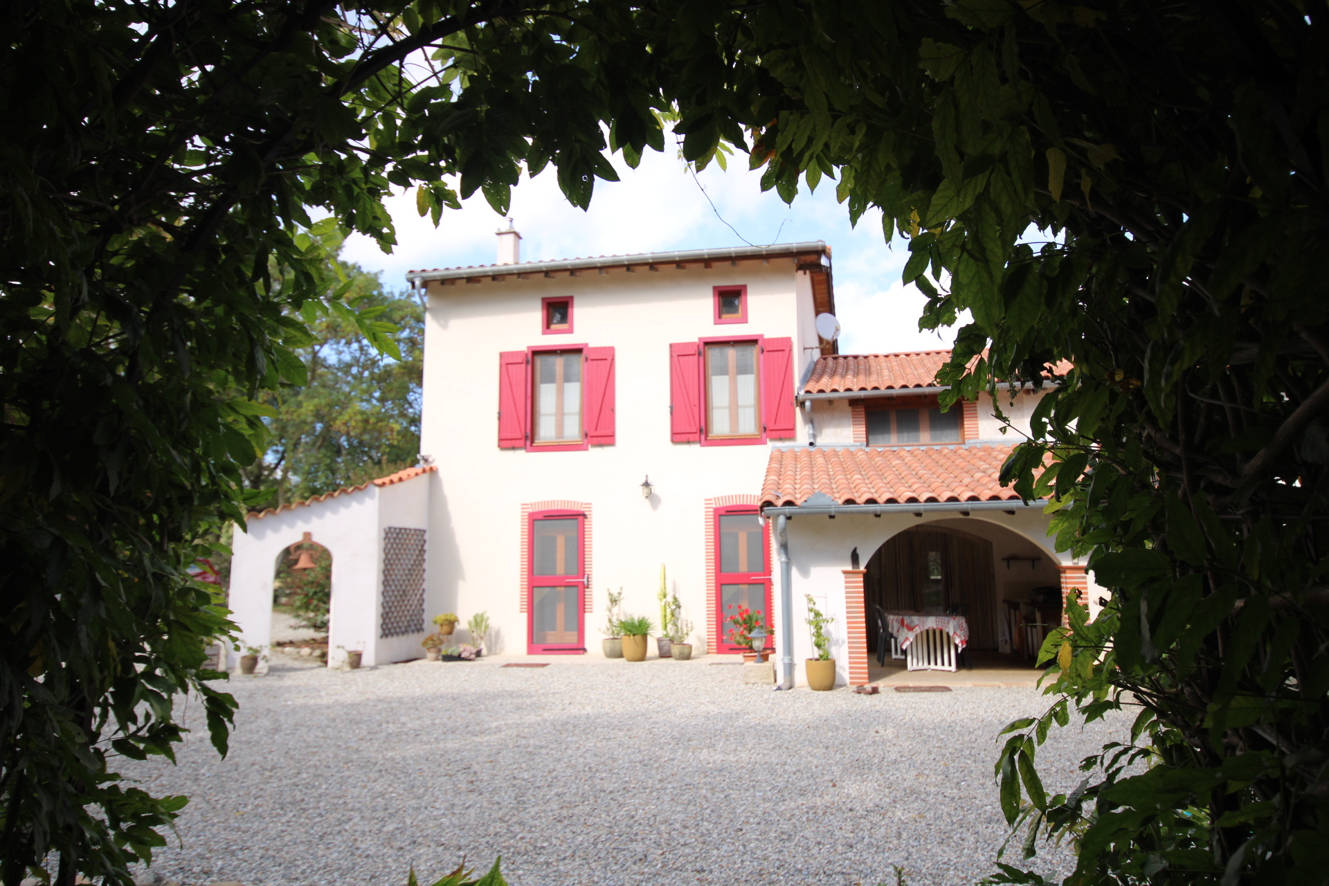 Dépendances : double garage attenant à la maison avec portail electrique, 2 autres garages, atelier, abris bois, terrasse couverte et local technique.