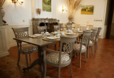 Les étages desservis par l’escalier regroupent neuf chambres en suite (avec leur propre salle de bains), toutes uniques, assurant le confort et l’aisance nécessaire pour diverses prestations.