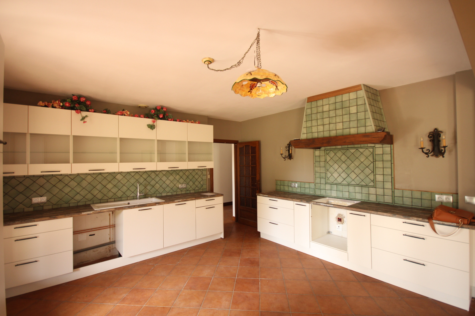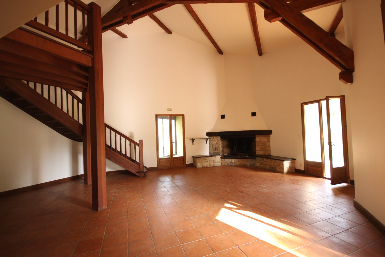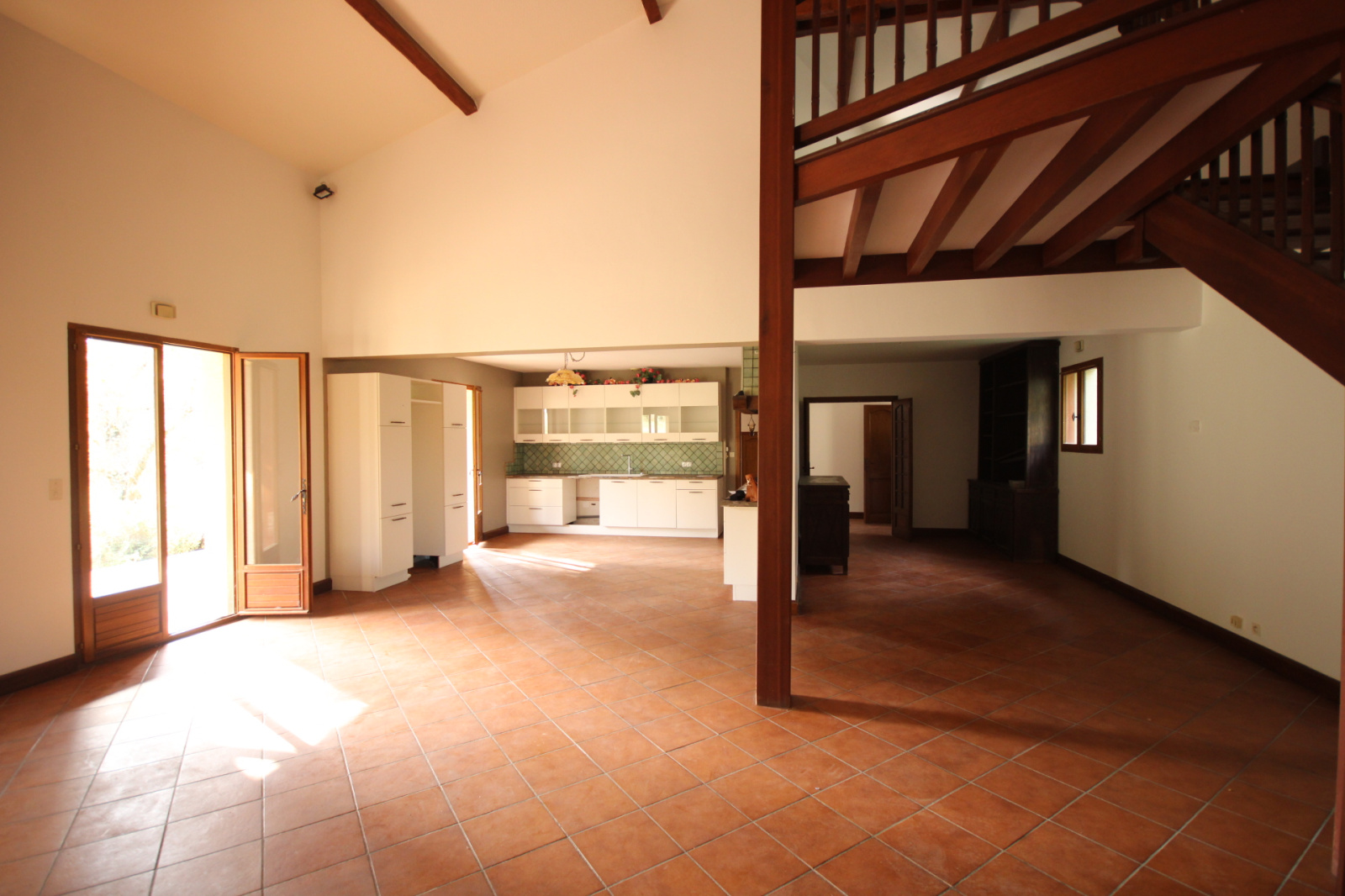 Au rez de chaussée : 1 entrée de 10 m2, 1 cuisine équipée/ salon / salle à manger de 76 m2 avec cheminée ouverte donnant sur terrasse et véranda de 12 m2