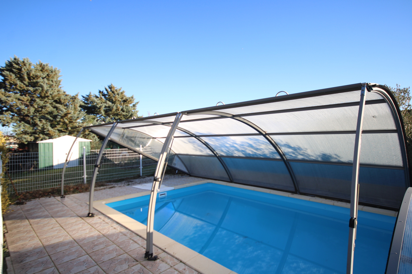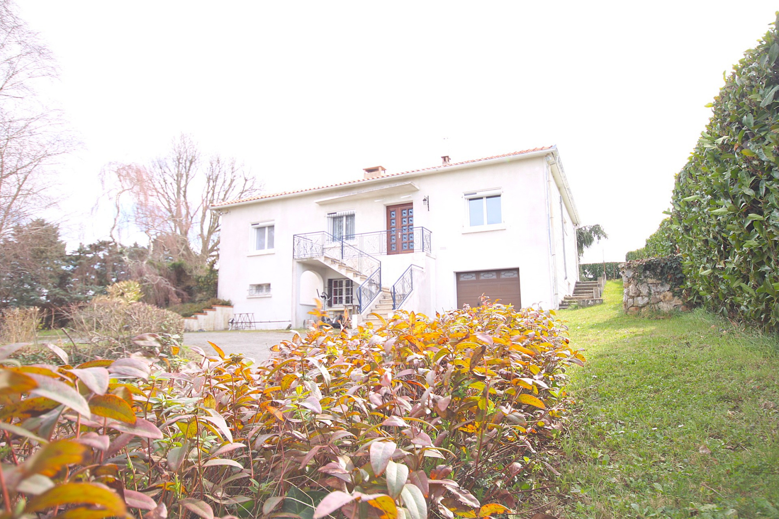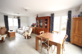 En rez-de-jardin : entrée, bureau, salon-séjour avec cheminée (insert granulés), cuisine équipée, véranda et cheminée, cellier, 2 chambres, un cabinet de toilette, salle de bains et toilettes séparés.