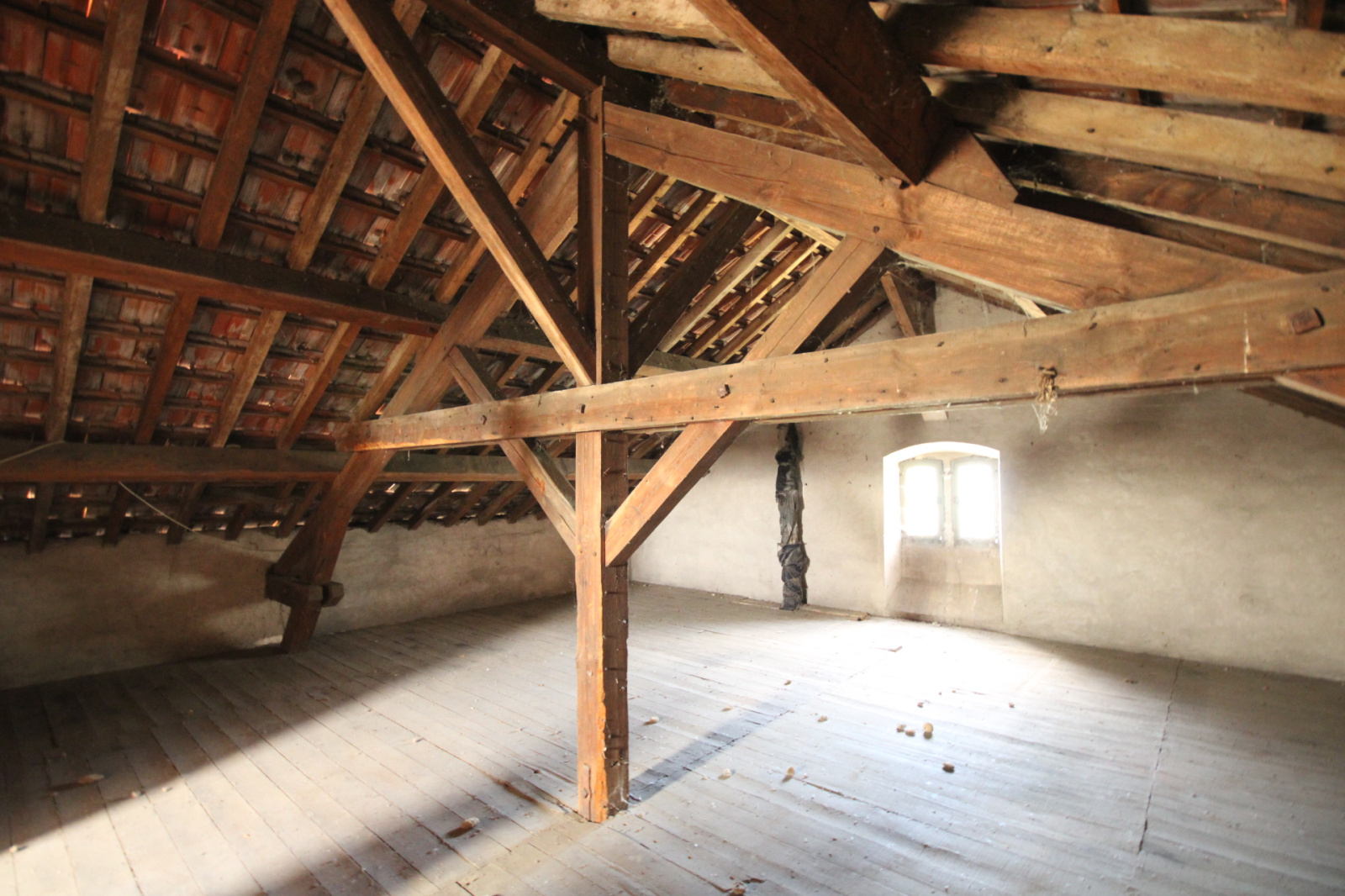 1er étage : sur une superficie totale de 90 m² : 1 séjour/pièce à vivre, 1 chambre exposition Nord, 1 chambre exposition Sud, 1 salle de bains, 1 pièce cuisine avec accès combles.