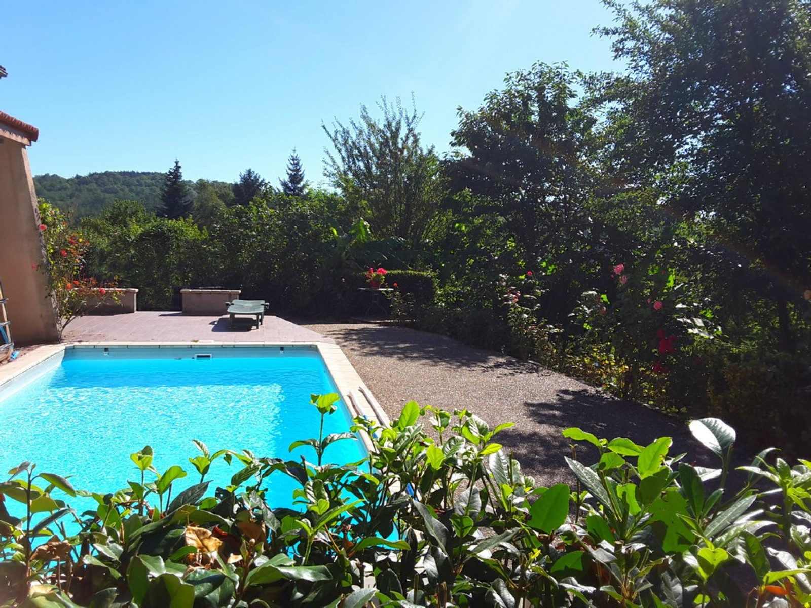 Une piscine de 7 x 3 m, entourée d’une terrasse ensoleillée, vient parfaire cet ensemble harmonieux.