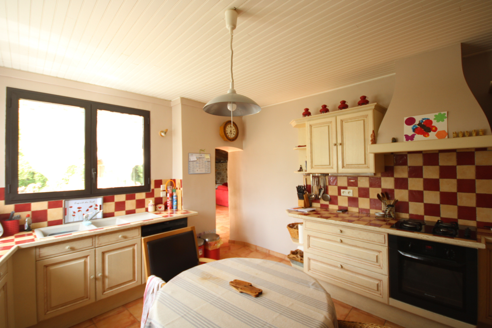 La maison se compose : entrée, une cuisine équipée de 17m2, une grande pièce à vivre et un séjour salon de 77 m2 donnant sur un balcon/ terrasse, 4 chambres, une salle d’eau, toilettes, une pièce annexe.