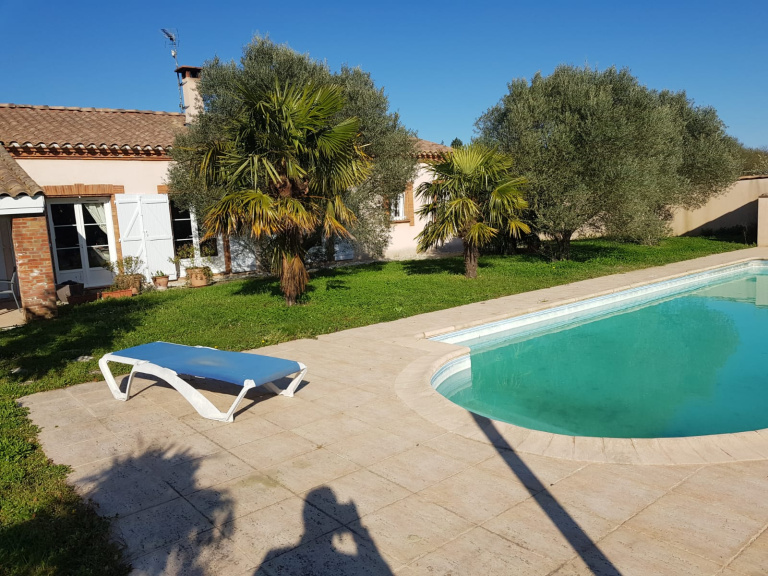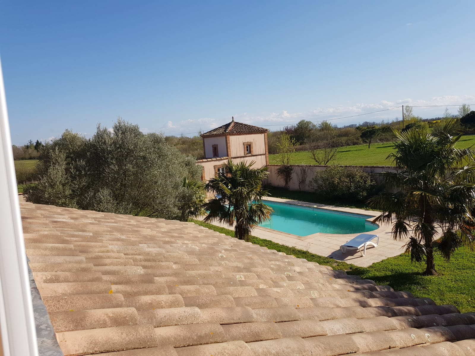 Belle propriété sur terrain paysagé et arboré d’env. 1,5 Ha, exposition Sud, piscine de 10 x 5 et son pool house, vue sur les Pyrènes et la campagne environnante, garage et annexe.