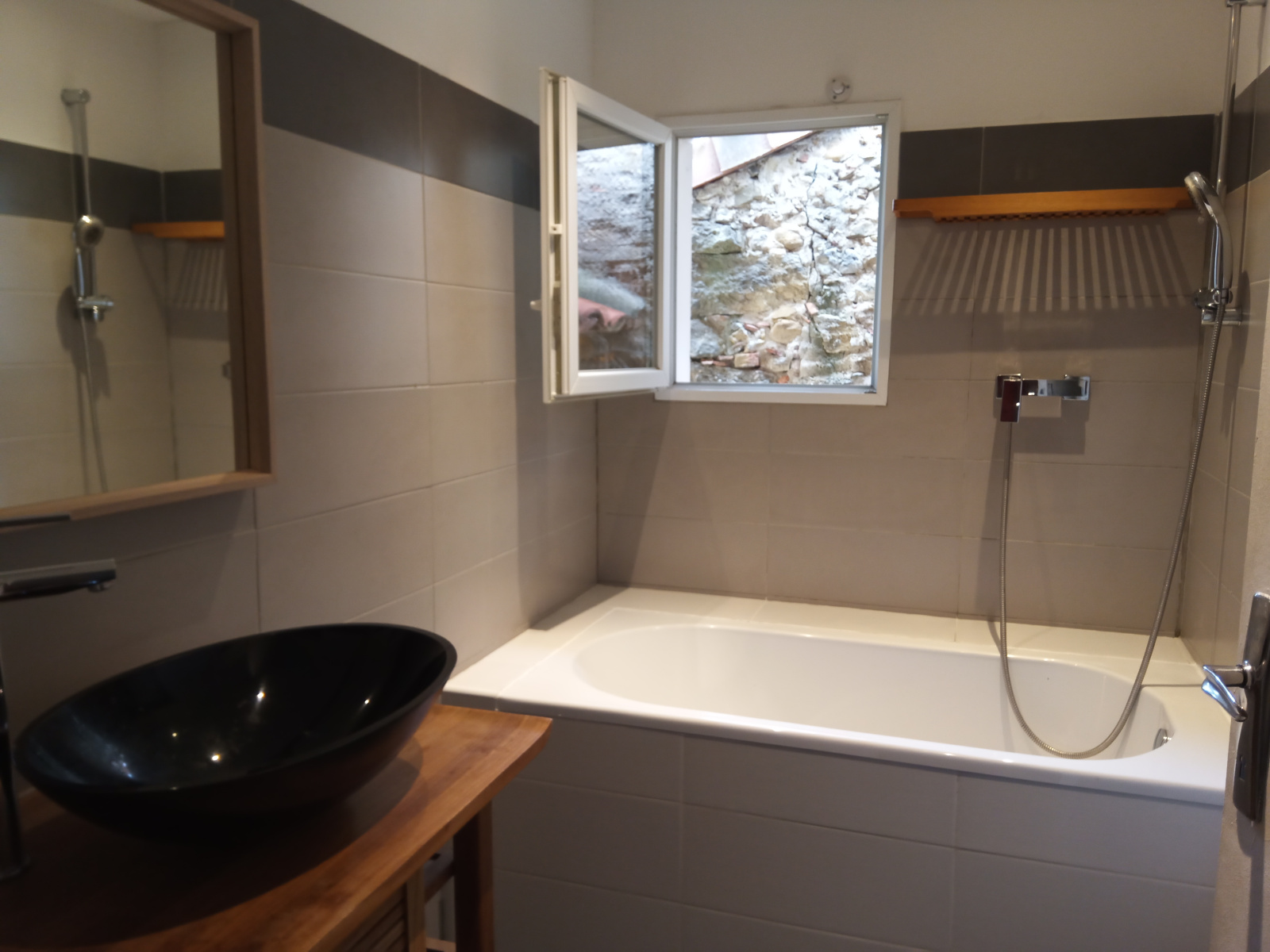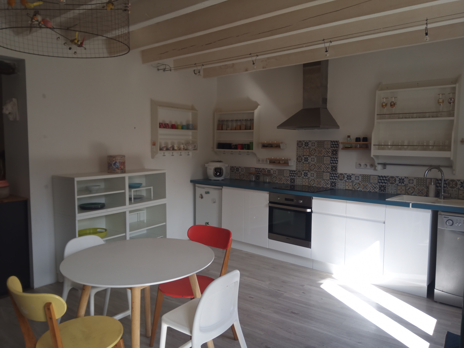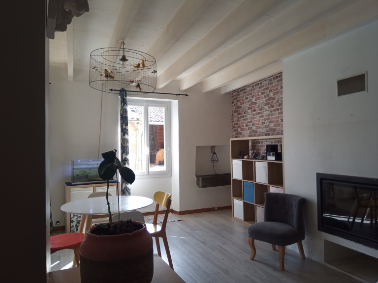 Au 1er étage : un grand espace/pièce sur la totalité d’environ 40 m² (comprenant cuisine équipée, séjour, salon) et un accès à la terrasse Ouest.