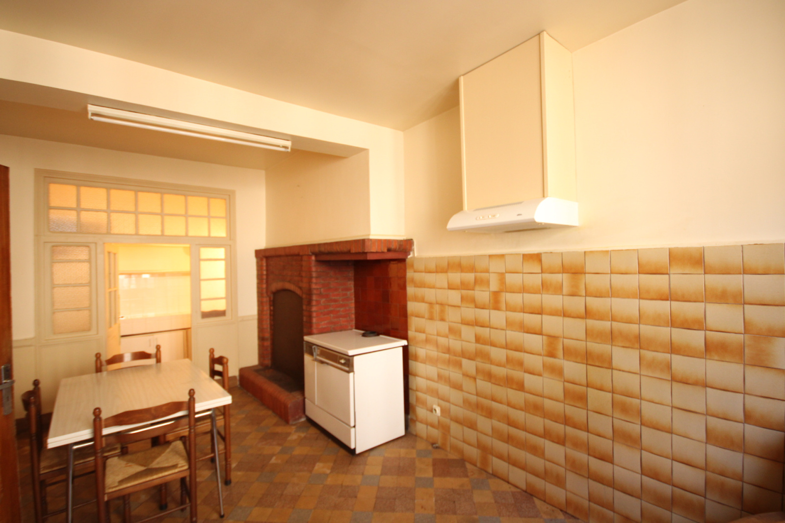 Au rez de chaussée : 1 entrée, 1 cuisine avec cheminée + 1 arrière cuisine, 1 salon, 1 pièce annexe donnant sur la terrasse, 1 garage
