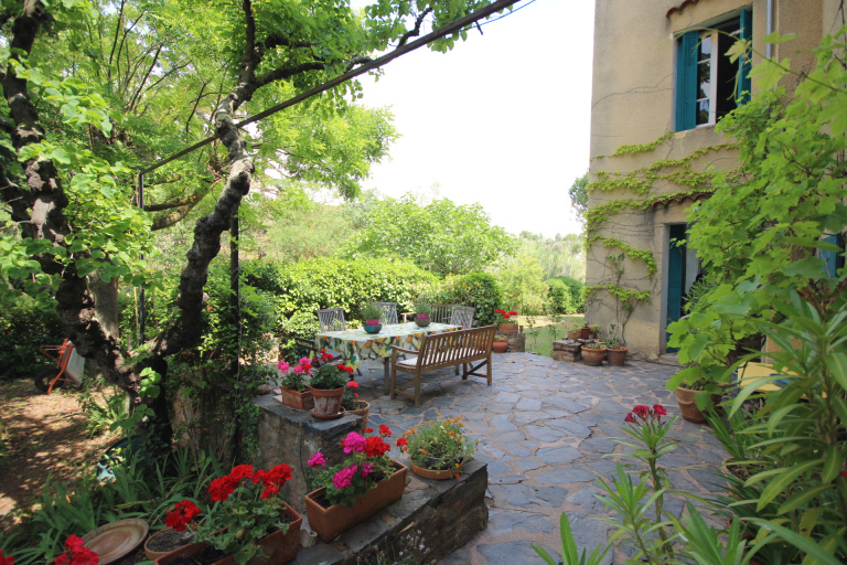 Belle maison en pierres de 195.62 m² sur terrain de 1300 m², exposition sud, paysagé et arboré avec rivière en contrebas. Grande grange de 85 m², qui abritait anciennement une cave à vin.